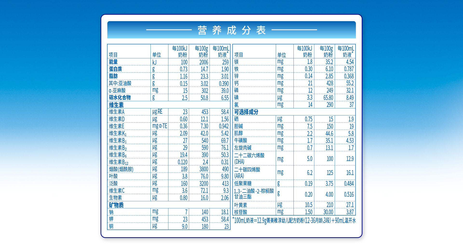 營養(yǎng)成分表